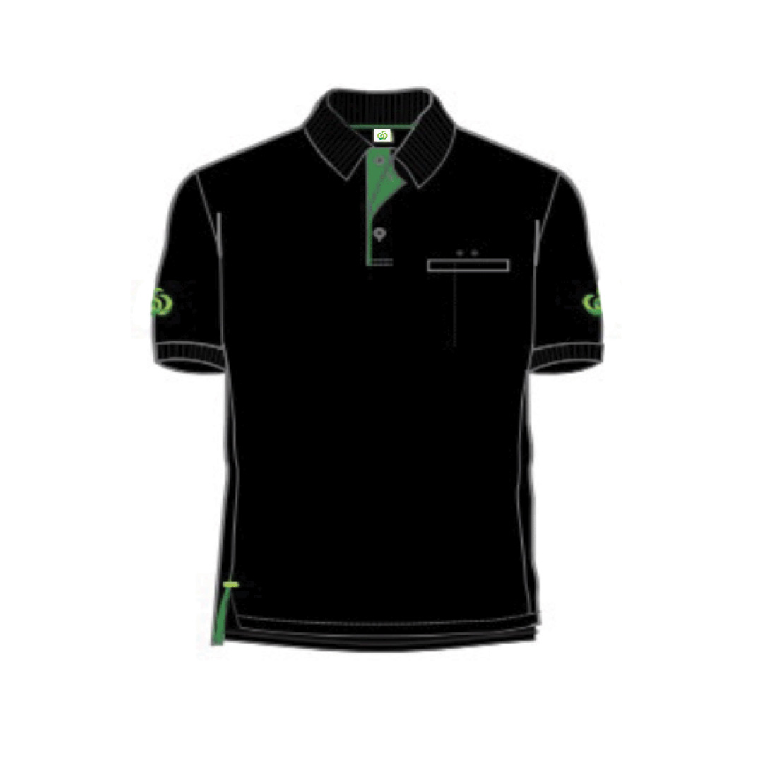 Woolworths branded long sleeve polo with a form fit. 65% recyclable polyester 35% cotton.
